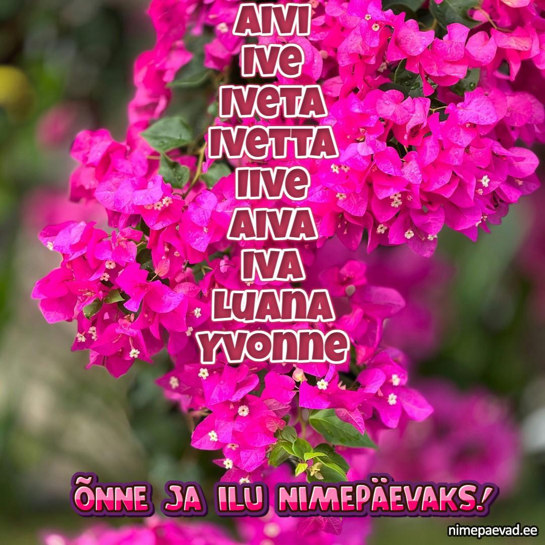 Aivi, Ive, Iveta, Ivetta, Iive, Aiva, Iva, Luana, Yvonne, Clelia, Yvette, Aive, Iveete, Ivelin, Ivete