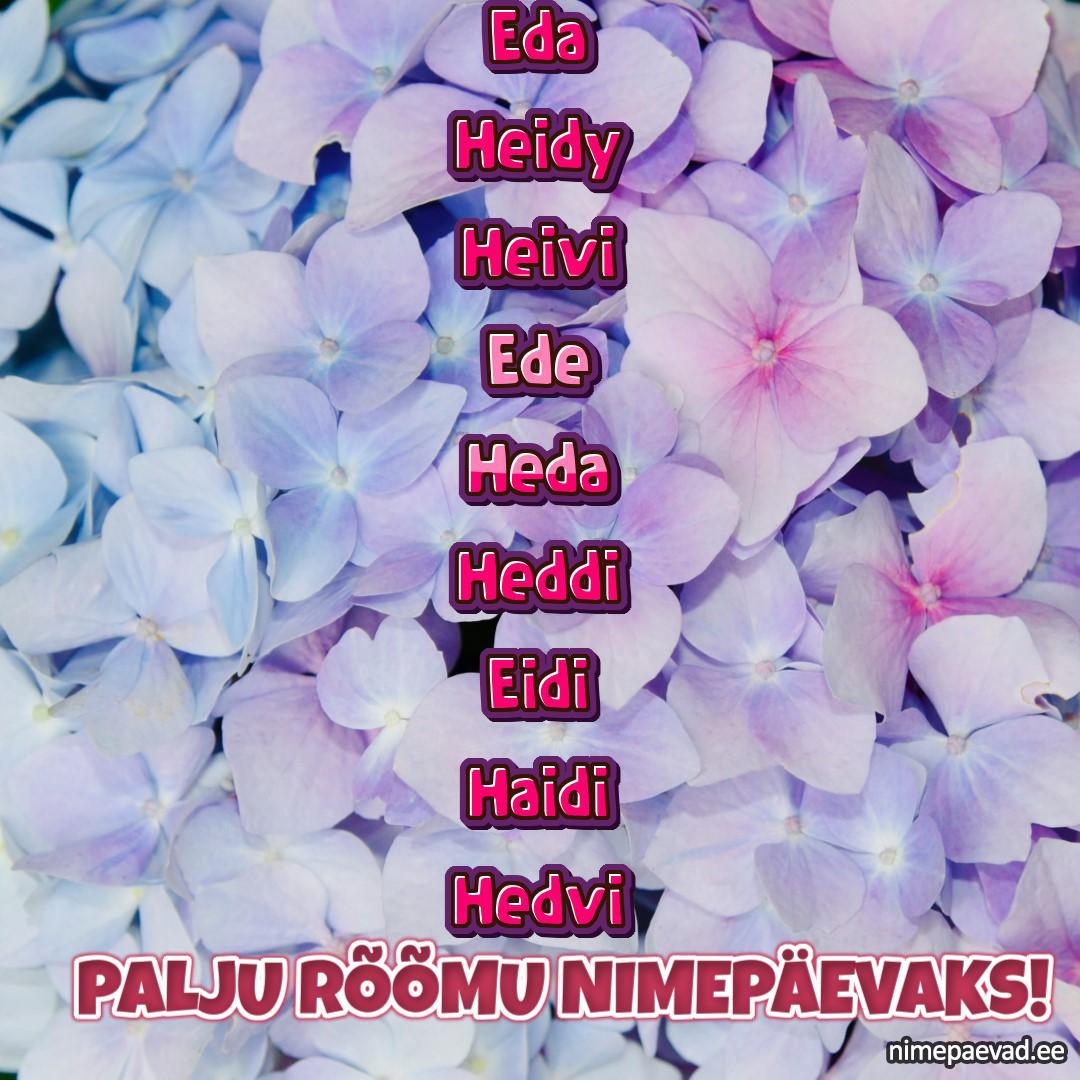 Selle päeva nimepäevalised on Eda, Heidy, Heivi, Ede, Heda, Heddi, Eidi, Haidi, Hedvi, Kian, Edeli, Edvika, Haimi, Heida, Edelyn, Ederi, Hedi, Hedvig, Heidi, Heti, Hädi, Häidi, Rosalinda-Edelyn. Ava nimede tähendused ja seotud nimepäeva lingid allpool.