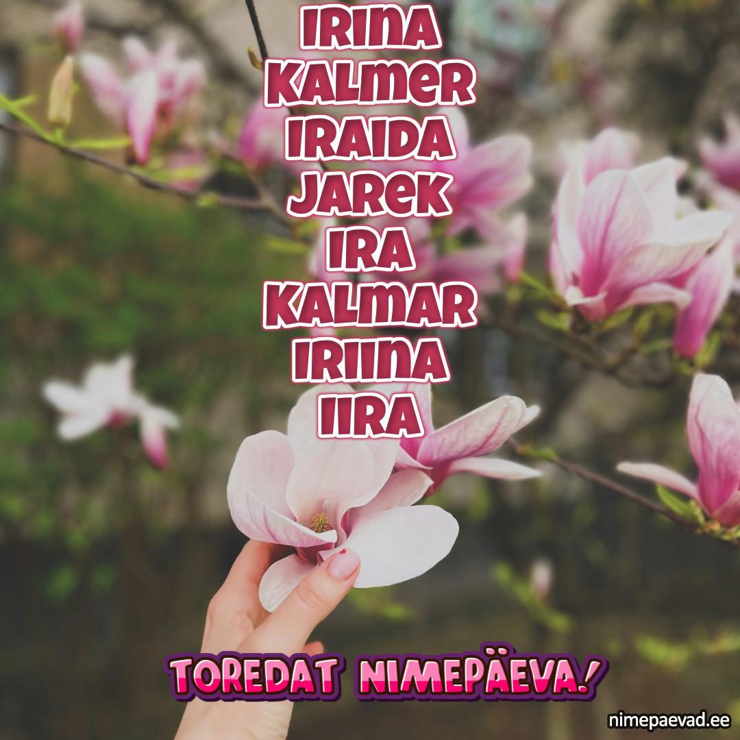 Selle päeva nimepäevalised on Irina, Kalmer, Iraida, Jarek, Ira, Kalmar, Iriina, Iira, Jaron, Jaarek, Jaren, Era, Kalmo. Ava nimede tähendused ja seotud nimepäeva lingid allpool.