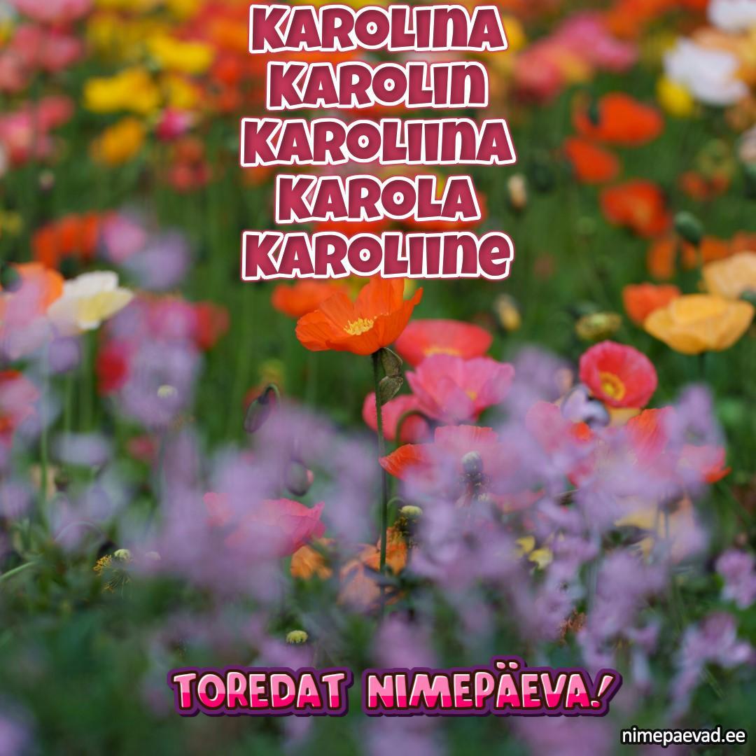 Karolina, Karolin, Karoliina, Karola, Karoliine, Carolin, Carolina, Kärolin, Carola, Karol, Karoli, Caroline, Kärol, Omar, Carolyn, Karoline, Eva-Lotta, Lotta, Käroli, Caroly, Lota, Cärol, Fatima, Lotte, Cärolin, Cäroly, Caroliina, Käroly, Caroli, Karolyn, Carol, Karlotta, Karoliis, Carla, Cärolyn, Farida, Kärolyn, Carlotta, Karlotte, Ofelia, Gärol, Karolis, Käroliin, Caroliis, Garolin, Gäro, Karoly, Keroli, Lotali, Gäro-Ly, Paula-Karoliina, Sydny-Karoline
