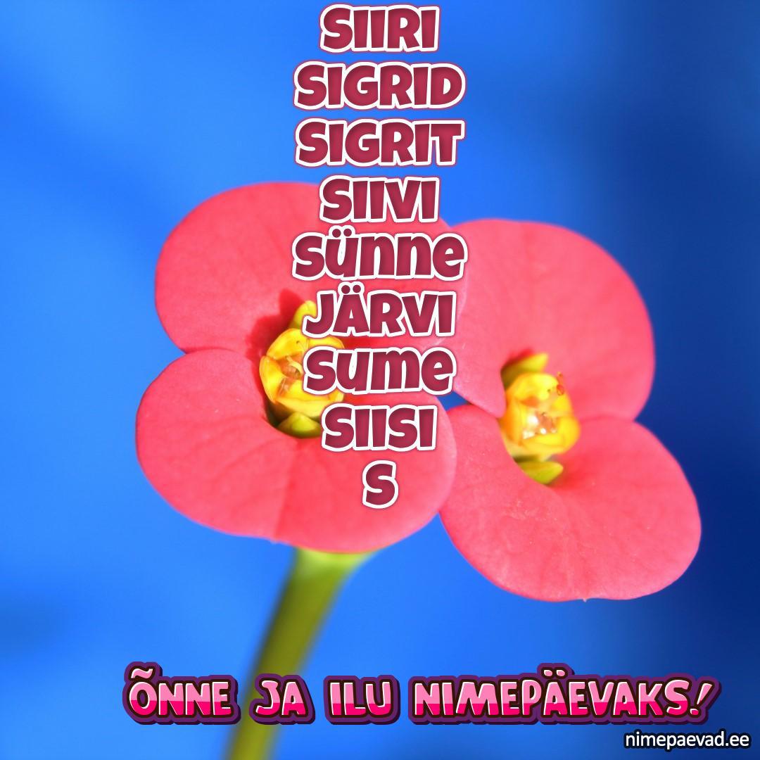 19. juunil on nimepäev: Siiri, Sigrid, Sigrit, Siivi, Sünne, Järvi, Sume, Siisi, Siri, Sigri, Sunne, Siisike, Siki, Sirid, Sune