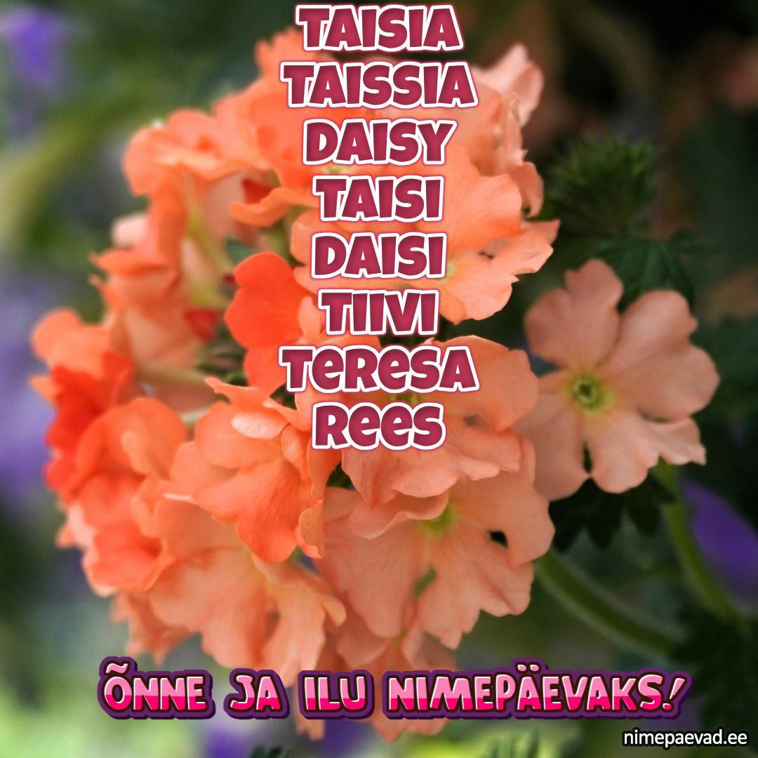 Selle päeva nimepäevalised on Taisia, Taissia, Daisy, Taisi, Daisi, Tiivi, Teresa, Reesi, Taisija, Tessa, Therese, Tereza, Theresa, Deisy, Teisi, Deisi, Teesi, Eesi, Teili, Tereese, Tess, Eisi, Terttu, Teisy, Terese, Heisi, Deevi, Deivi, Deyvi, Teevi, Teivi, Tereesa, Terri, Terry, Teve, Daisy-Tairy. Ava nimede tähendused ja seotud nimepäeva lingid allpool.