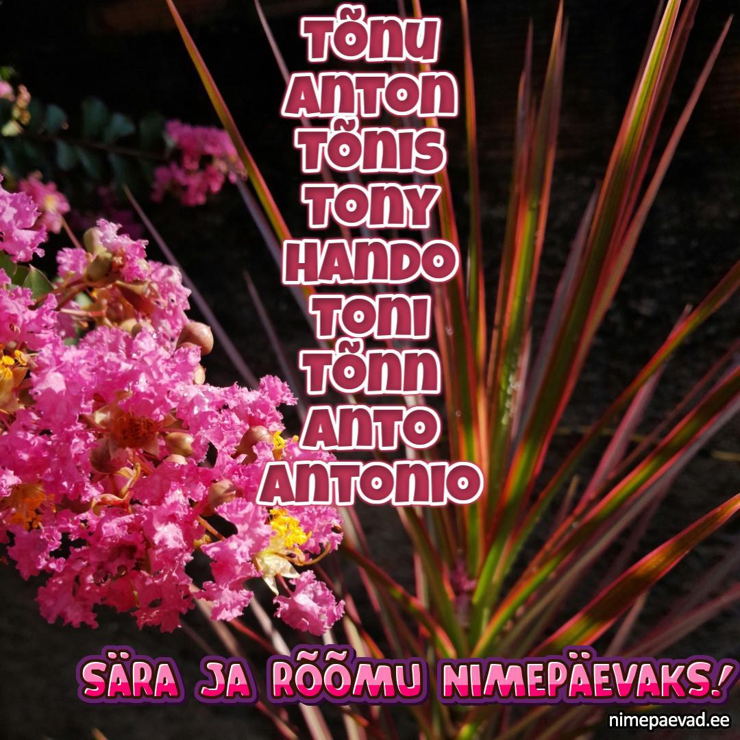 17. jaanuaril on nimepäev: Tõnu, Anton, Tõnis, Tony, Hando, Toni, Tõnn, Anto, Antonio, Anthony, Tõnno, Antoni, Antanas, Antons, Handro, Antony, Tõno, Antu, Nino