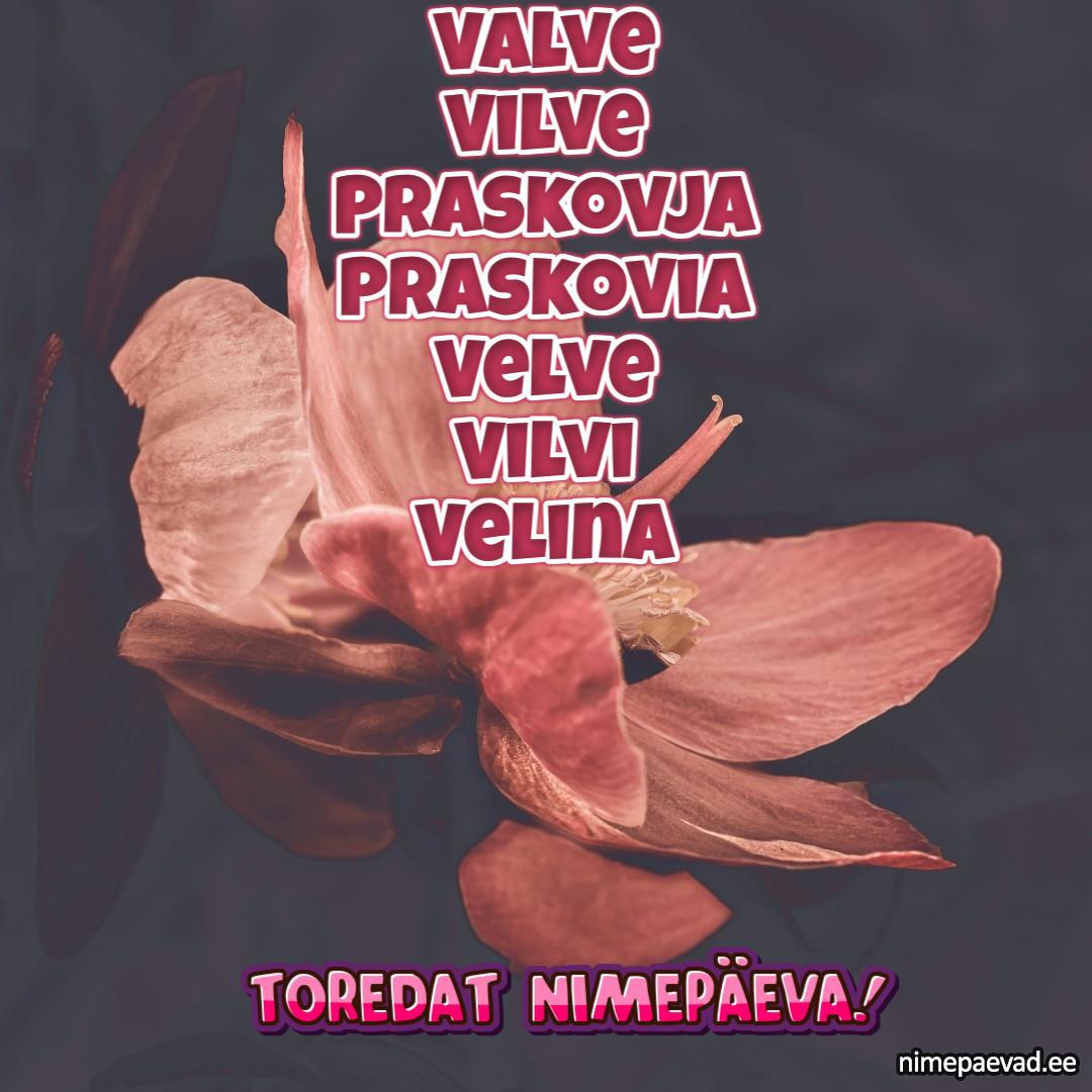 Selle päeva nimepäevalised on Valve, Vilve, Praskovja, Praskovia, Velve, Vilvi, Velina, Vilhelmine, Velvi, Valvi. Ava nimede tähendused ja seotud nimepäeva lingid allpool.
