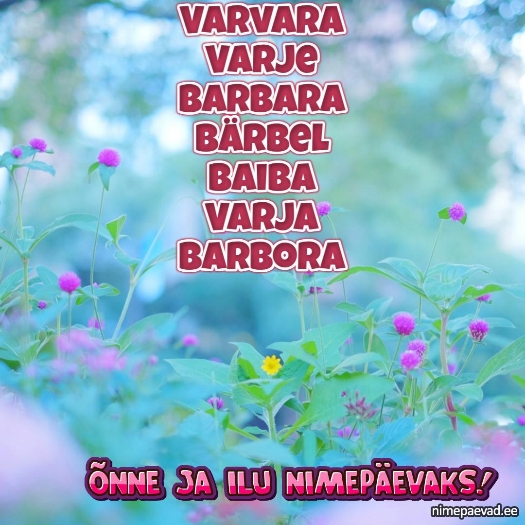 4. detsembril on nimepäev: Varvara, Varje, Barbara, Bärbel, Baiba, Varja, Barbora, Barbi, Babette, Barba, Parba, Parri, Pärbel, Varju, Varve