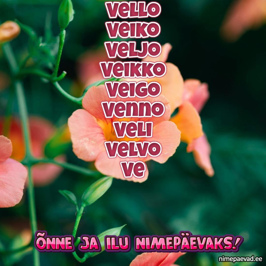 9. jaanuaril on nimepäev: Vello, Veiko, Veljo, Veikko, Veigo, Venno, Veli, Velvo, Venda, Eik, Velle, Veiki, Vendo, Massimo, Veijo, Väiko, Väigo, Veio